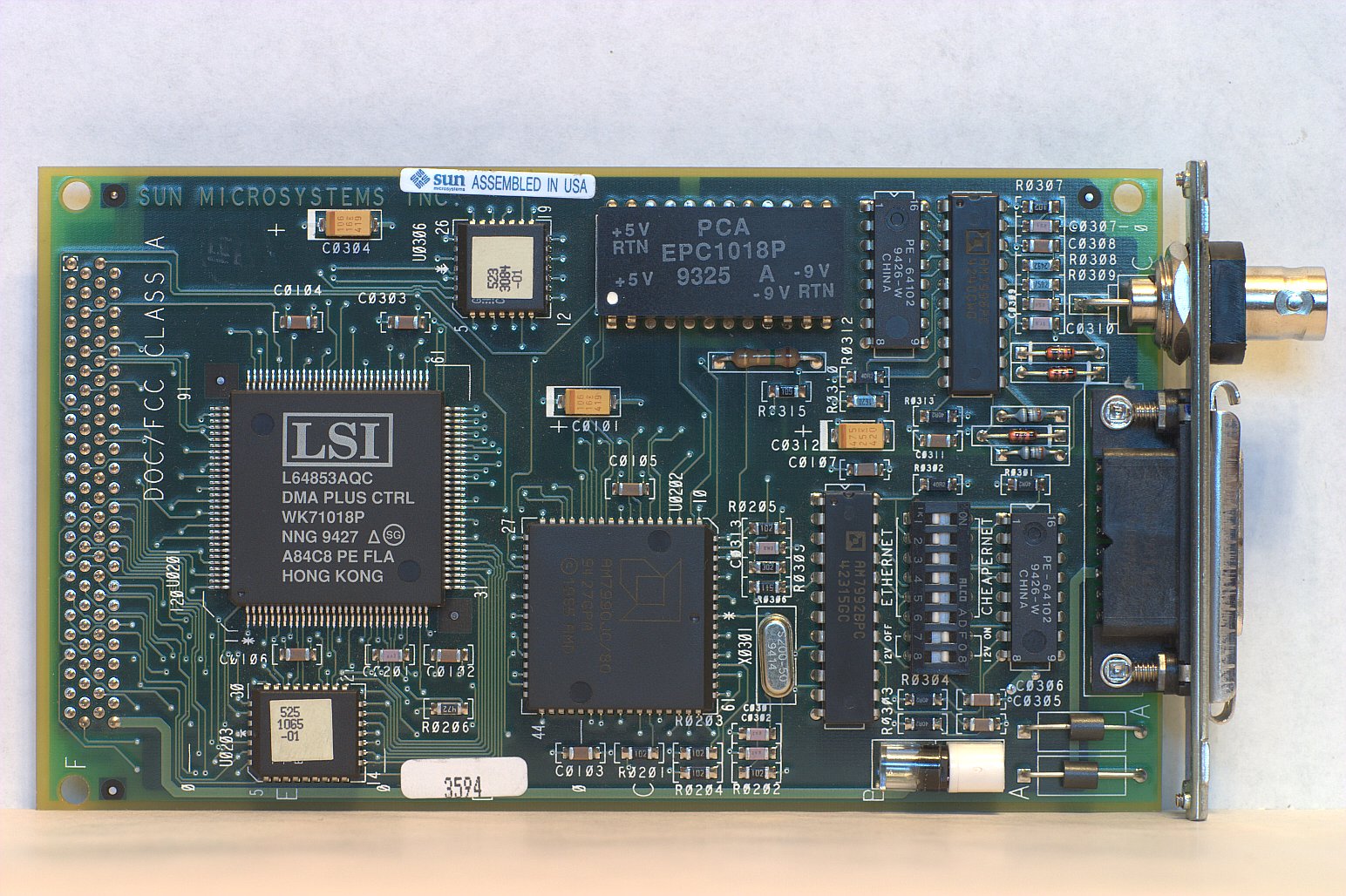 Sun Ethernet Controller [501-1881] LSI L64853AQC + AMD AM7990JC/80 SBUS Ethernet BNC: 10Base-2